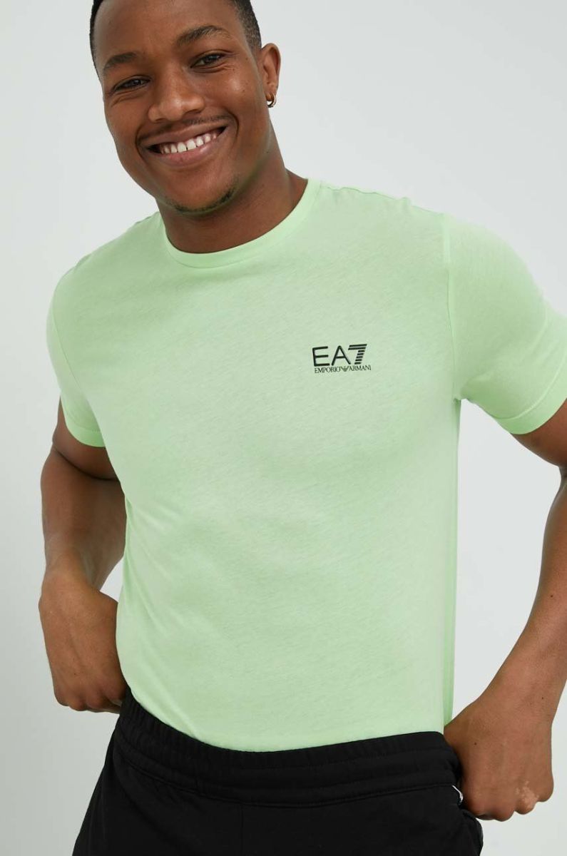 Бавовняна футболка EA7 Emporio Armani колір зелений однотонний