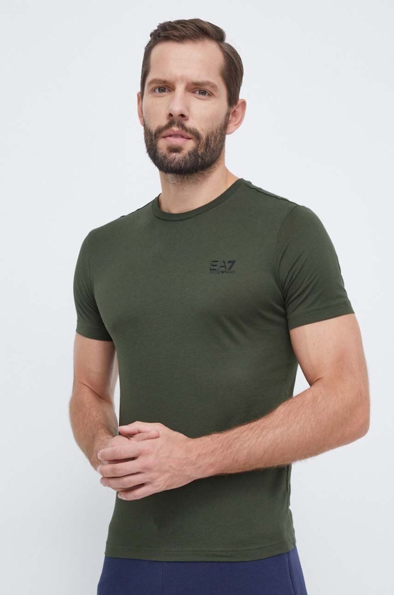 Бавовняна футболка EA7 Emporio Armani колір зелений з принтом (3309659)
