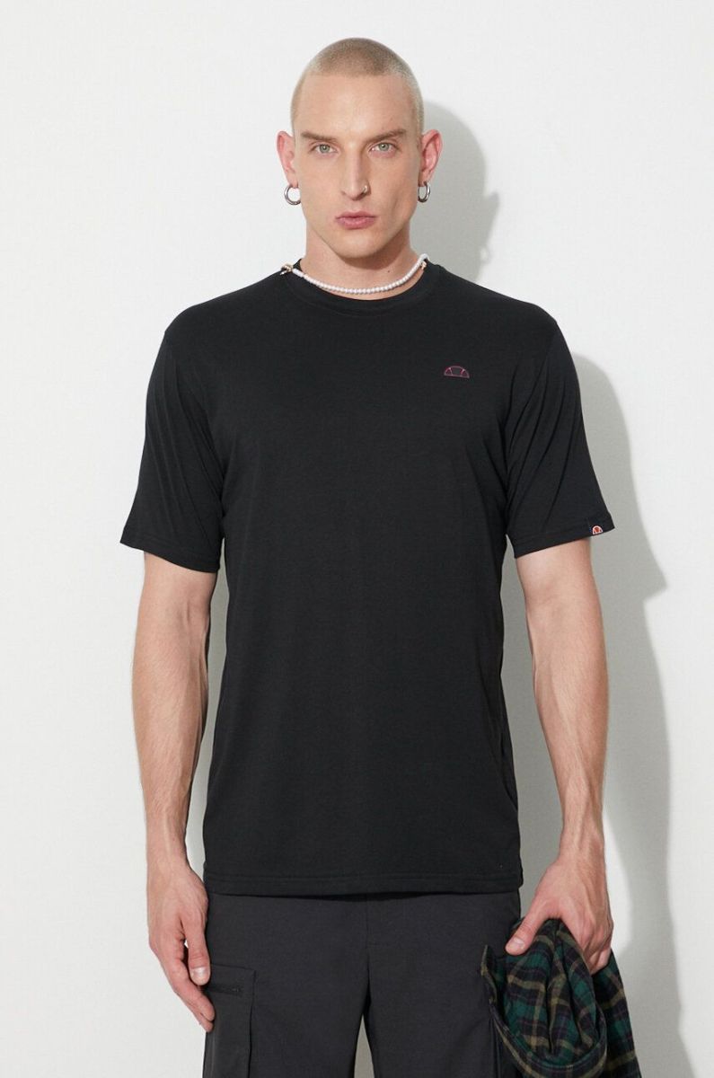 Бавовняна футболка Ellesse колір чорний з принтом SHR17639-WHITE
