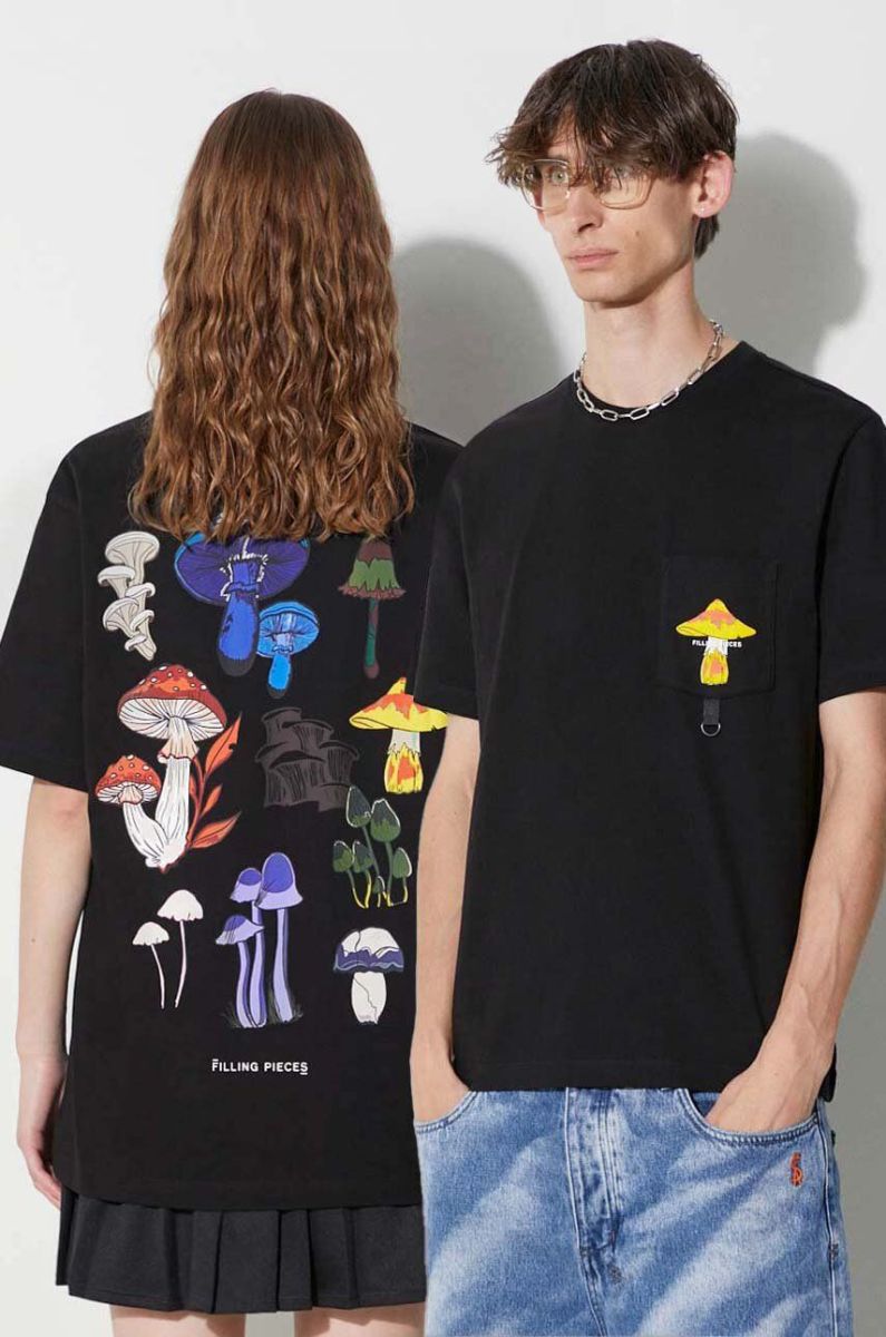 Бавовняна футболка Filling Pieces колір чорний візерунок