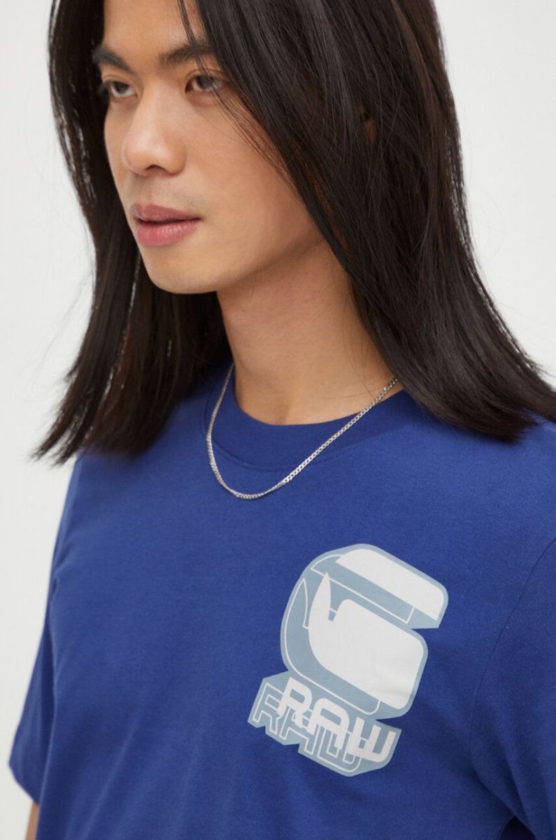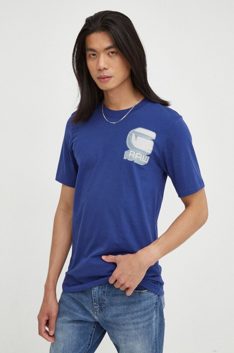 Бавовняна футболка G-Star Raw чоловічий з принтом колір блакитний (3654229)