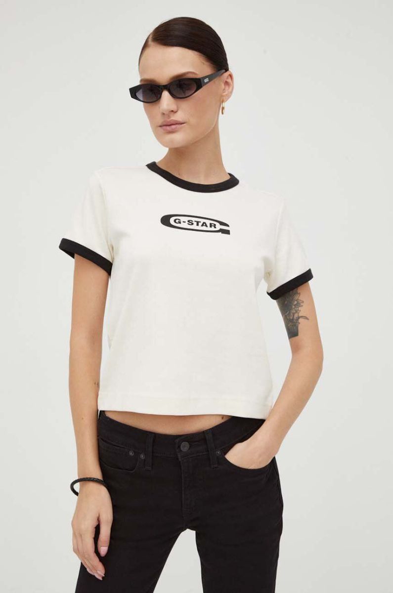 Бавовняна футболка G-Star Raw колір бежевий (3538872)