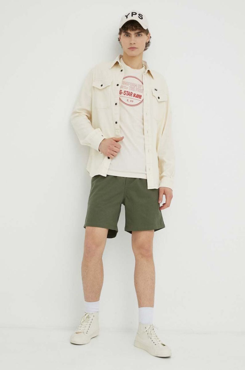 Бавовняна футболка G-Star Raw колір бежевий з принтом (3239428)