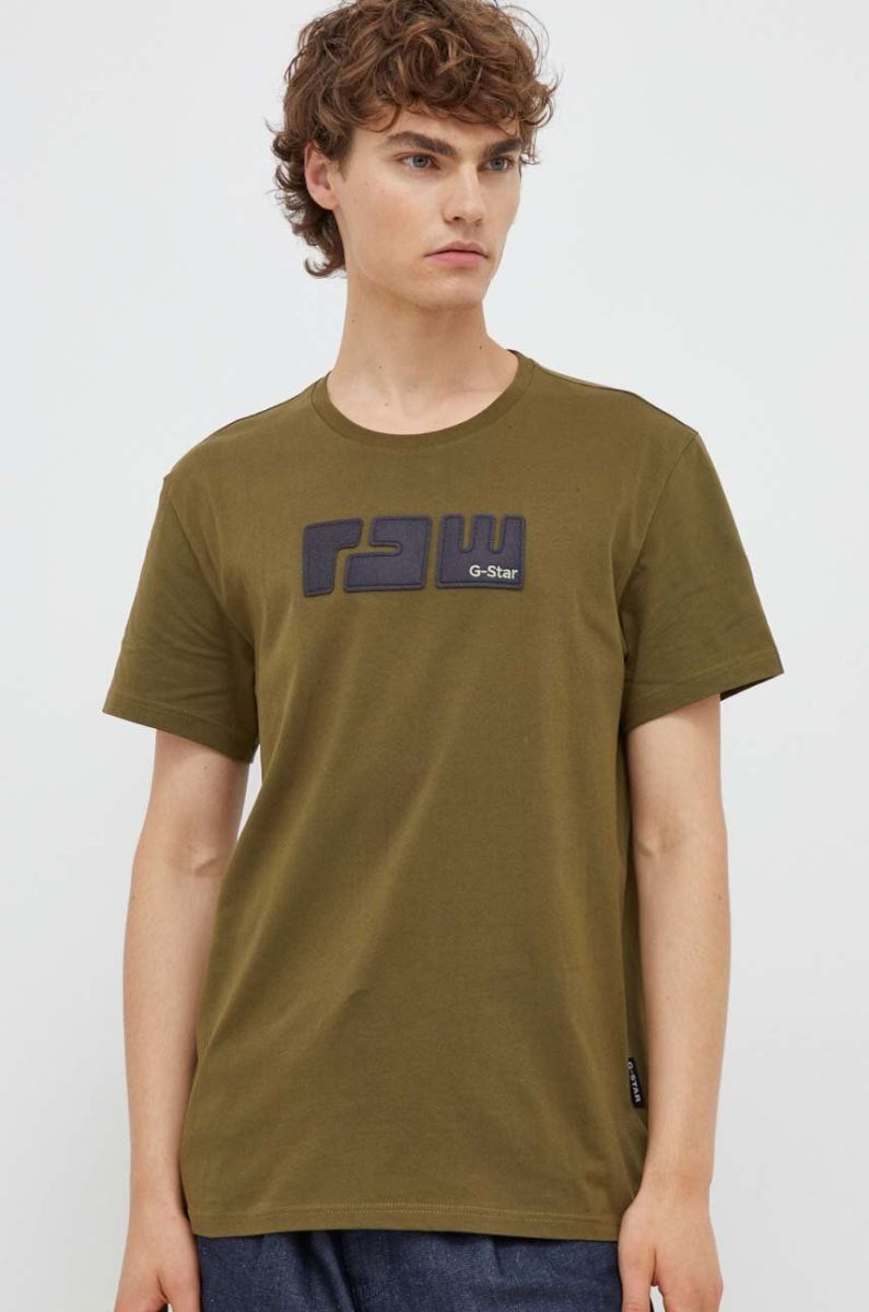 Бавовняна футболка G-Star Raw колір зелений з аплікацією (3475272)