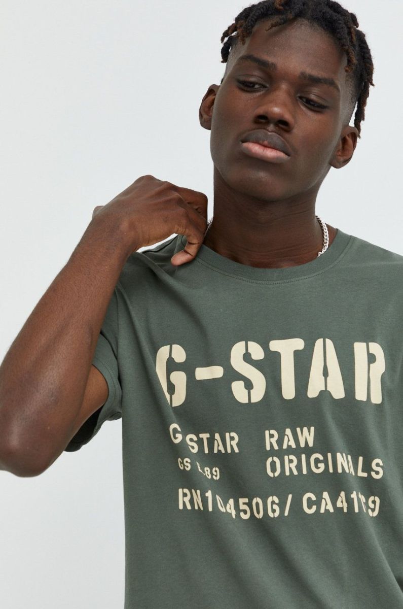 Бавовняна футболка G-Star Raw колір зелений з принтом (2556507)