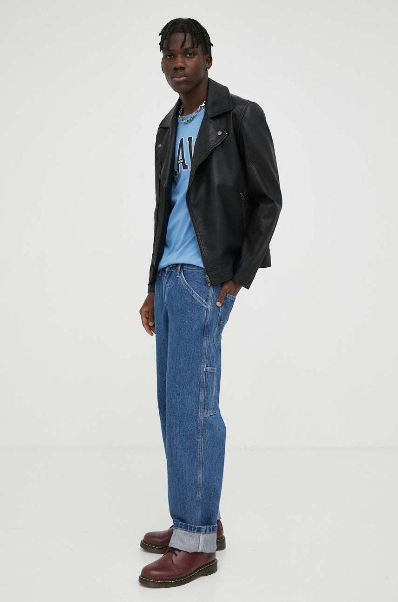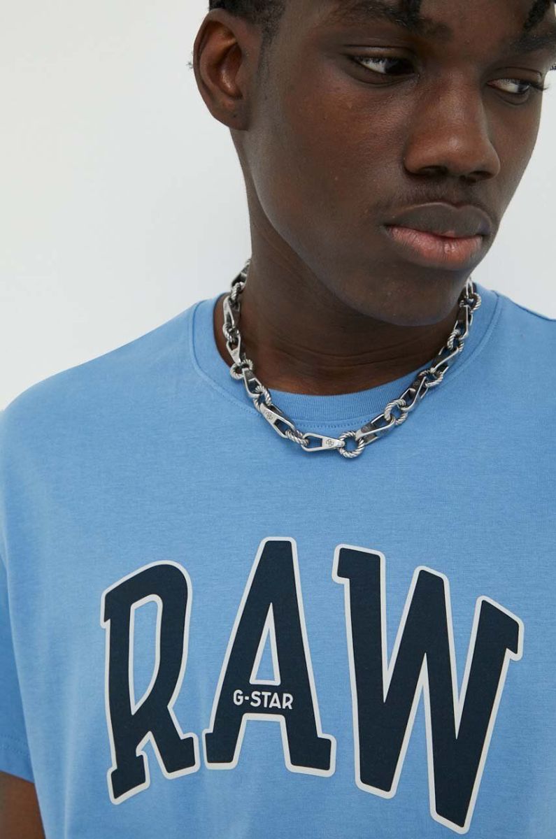 Бавовняна футболка G-Star Raw з принтом колір блакитний (3065626)