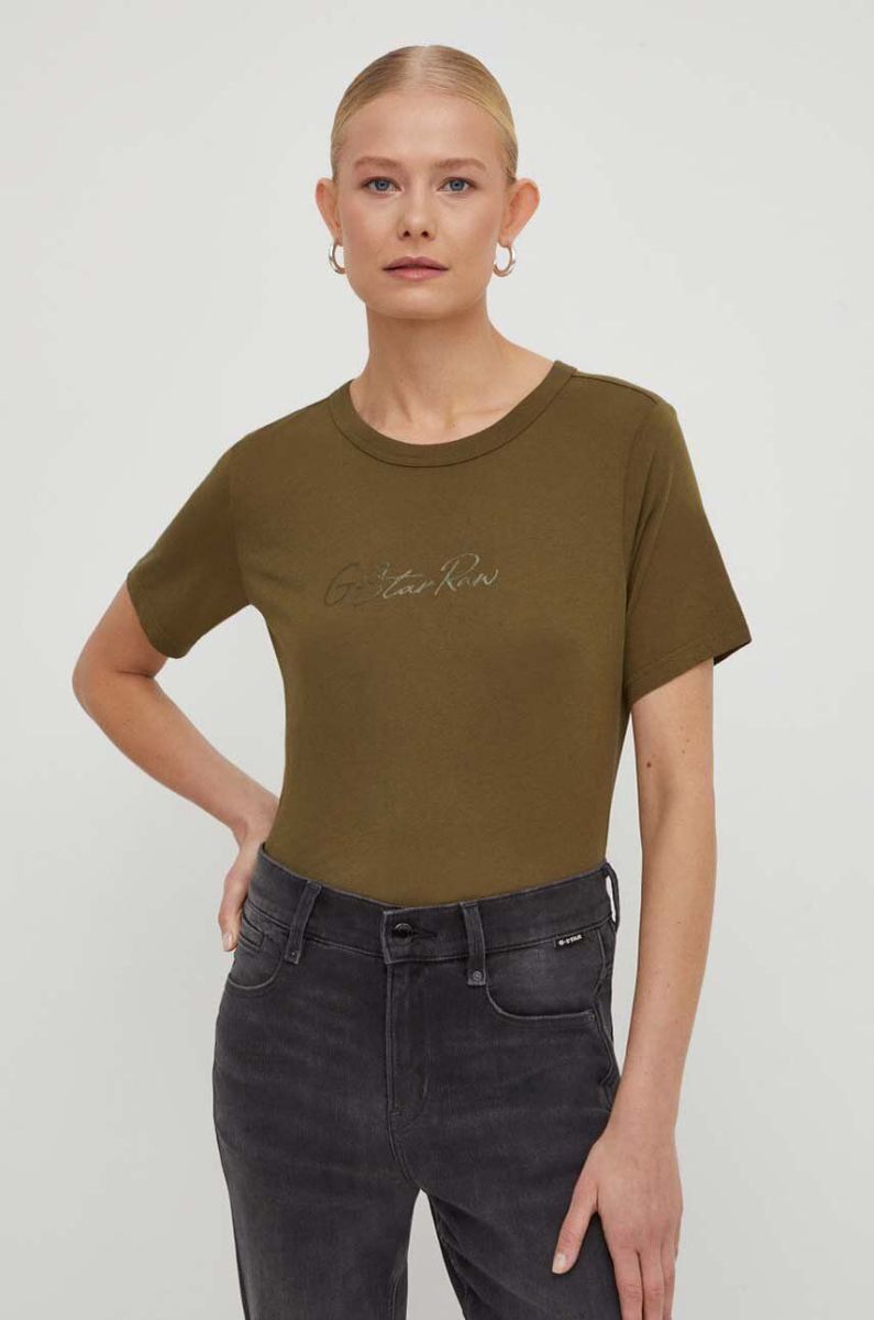 Бавовняна футболка G-Star Raw жіночий колір зелений (3657944)