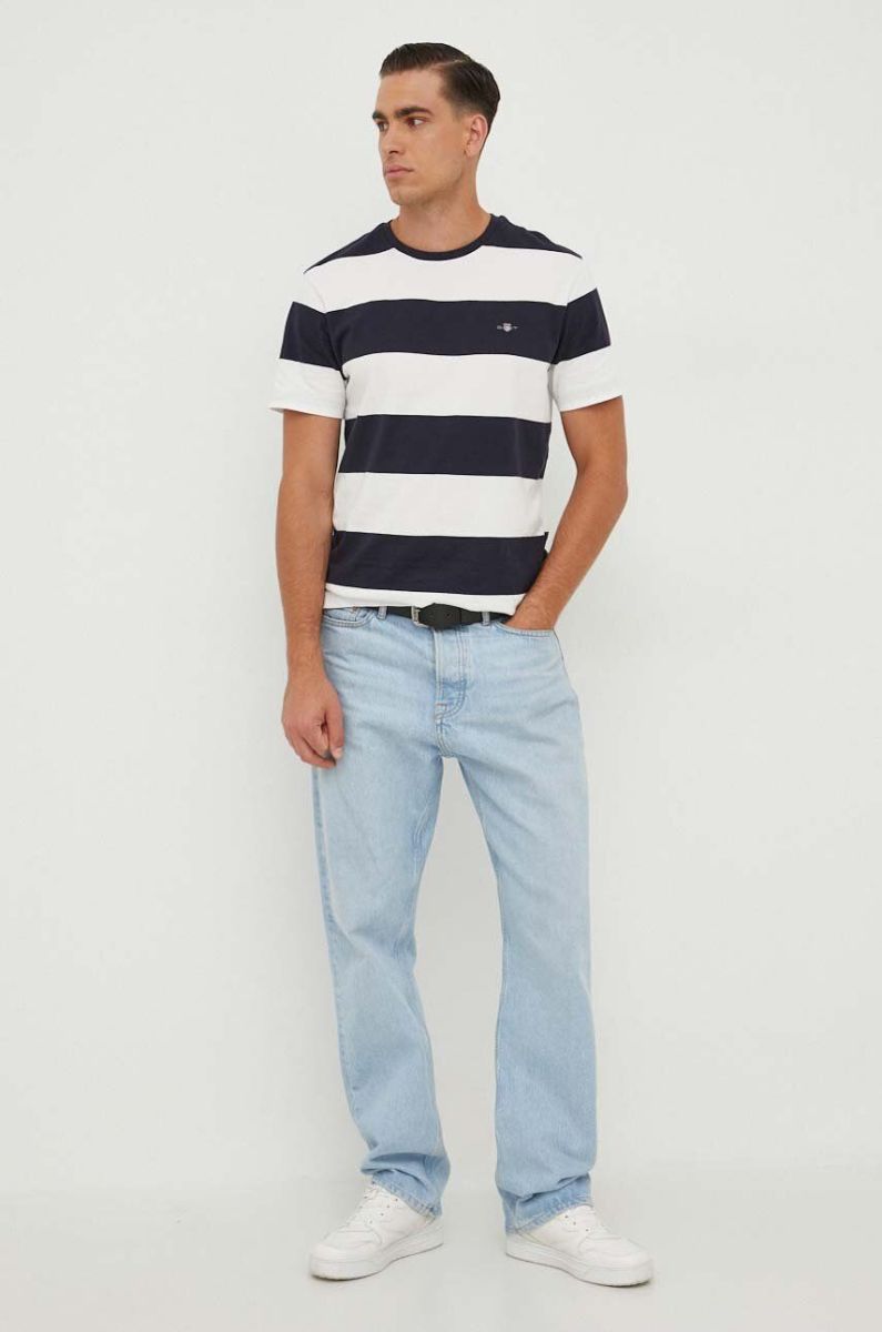 Бавовняна футболка Gant чоловічий колір білий візерунок