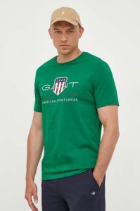 Бавовняна футболка Gant колір зелений з принтом (3343108)