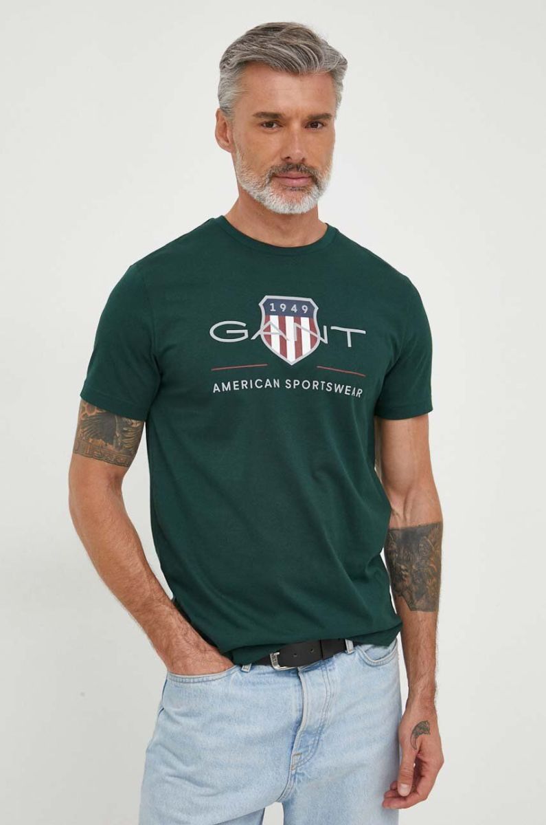 Бавовняна футболка Gant колір зелений з принтом (3572674)