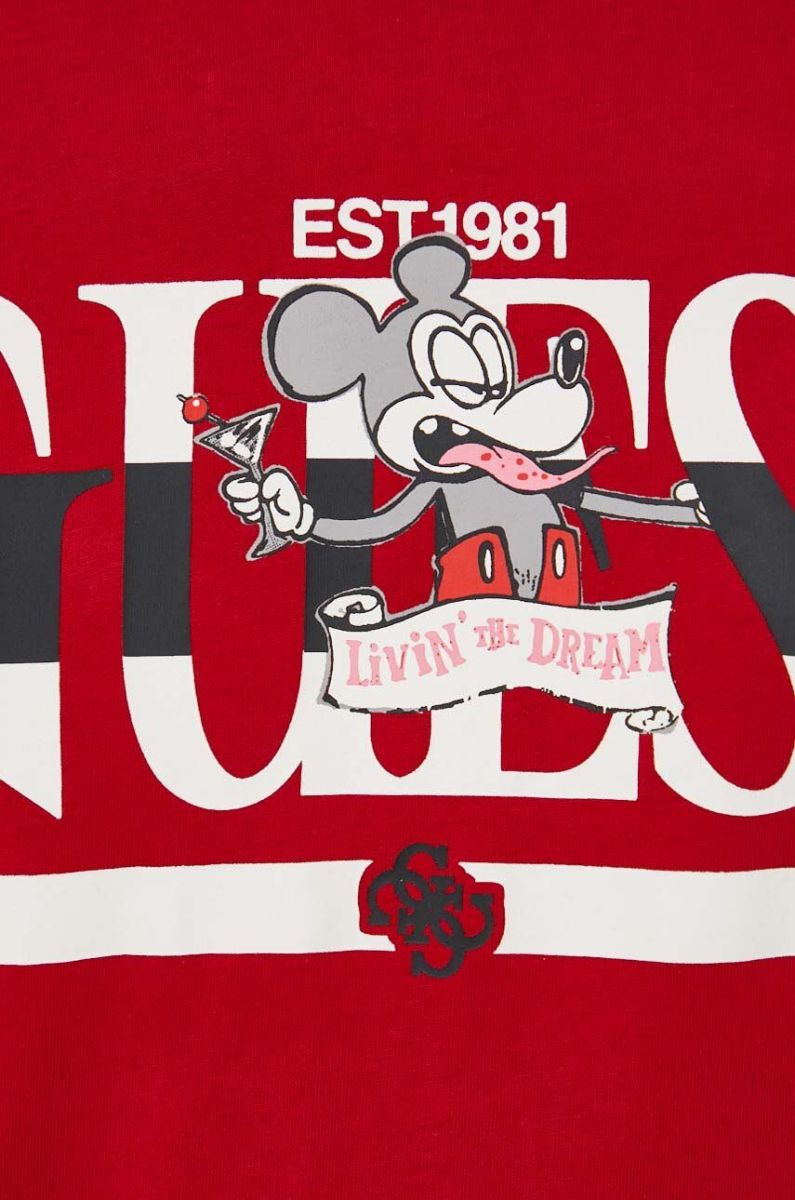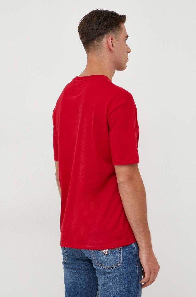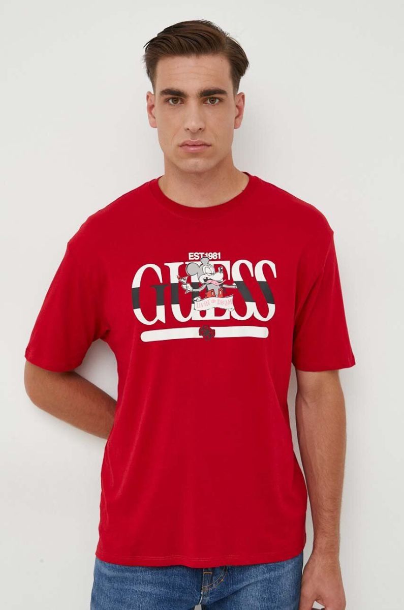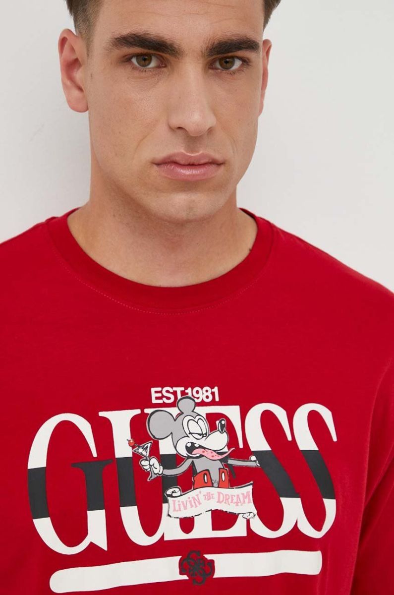 Бавовняна футболка Guess Guess x Banksy чоловіча колір червоний з принтом