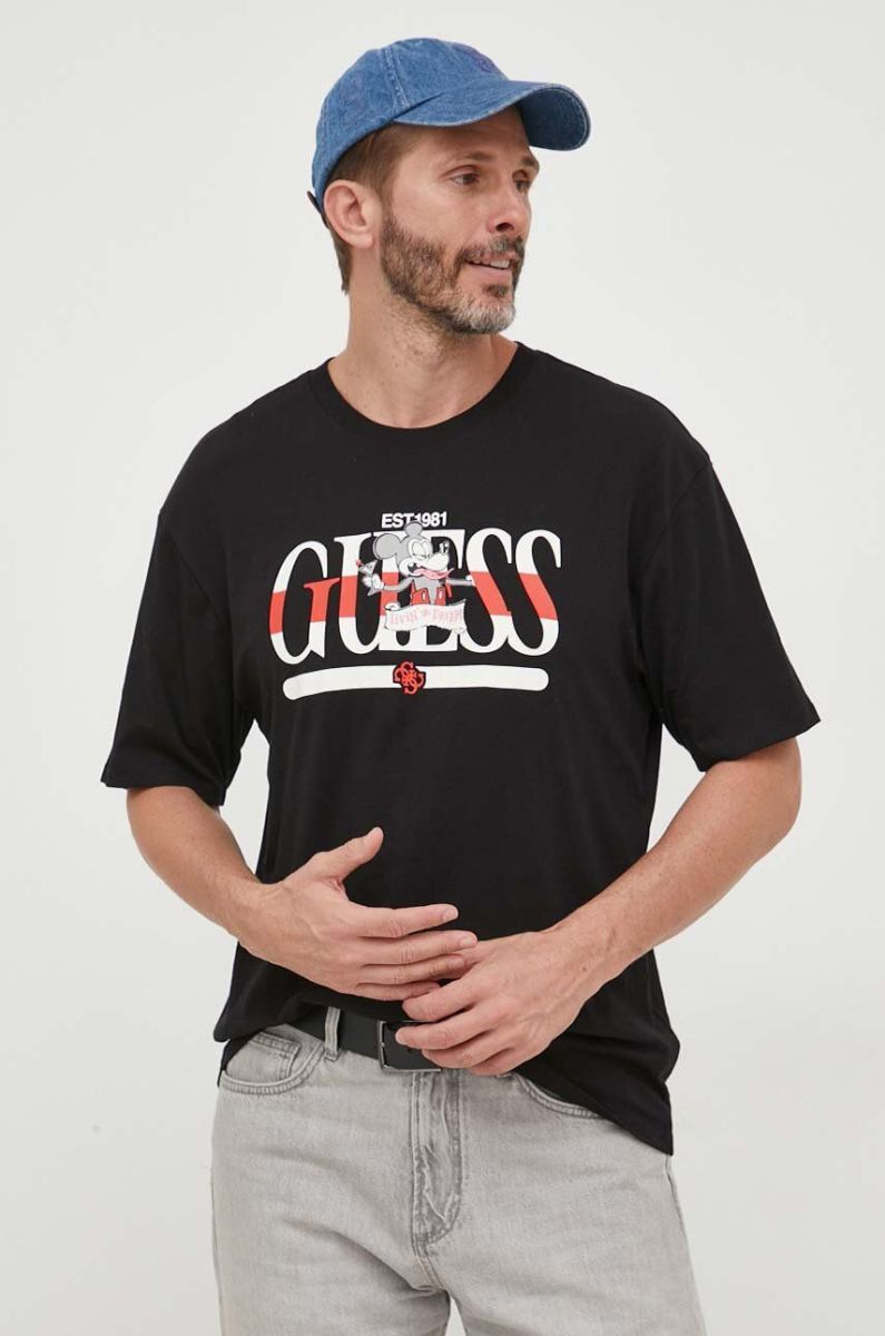 Бавовняна футболка Guess Guess x Banksy чоловіча колір чорний з принтом