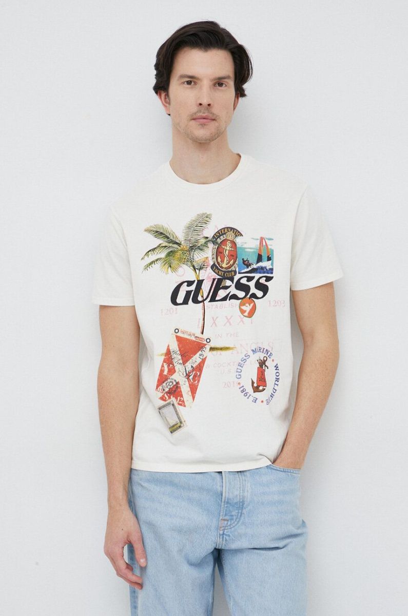 Бавовняна футболка Guess колір бежевий з принтом (3092005)