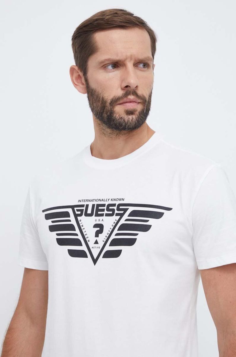 Бавовняна футболка Guess колір бежевий з принтом (3560543)