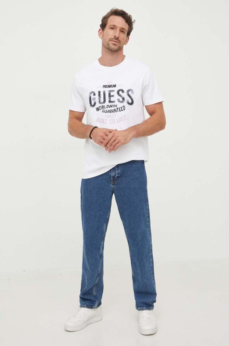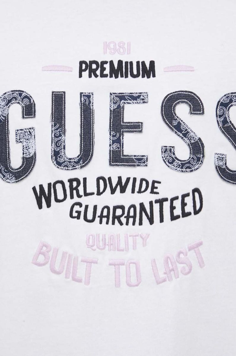 Бавовняна футболка Guess колір білий візерунок (3520706)
