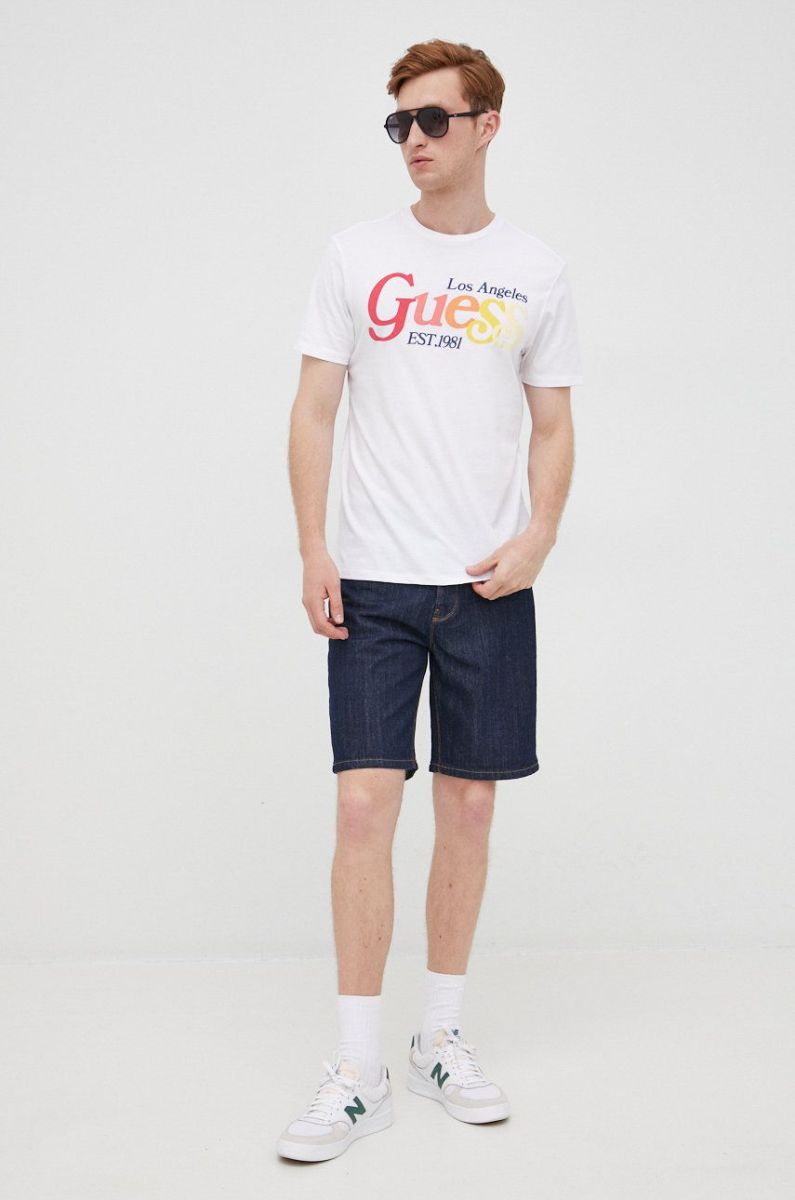 Бавовняна футболка Guess колір білий з принтом (2434750)