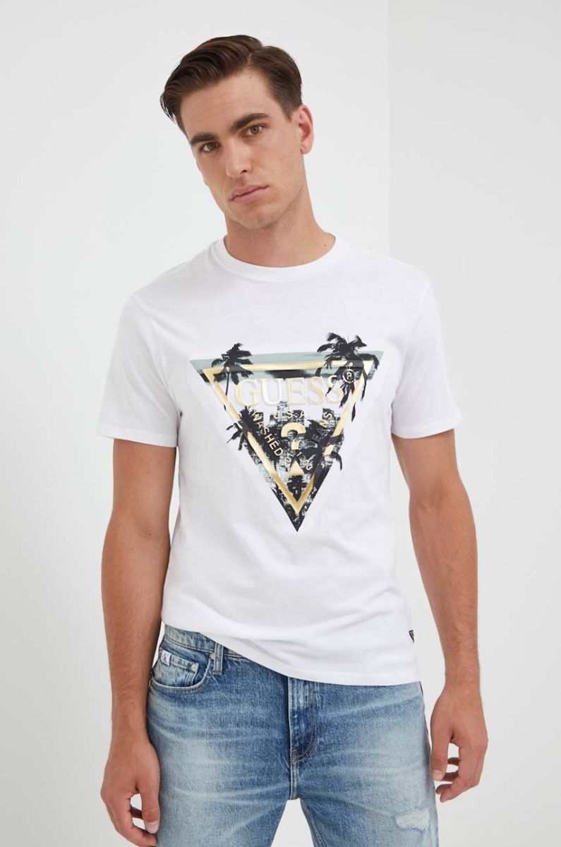 Бавовняна футболка Guess колір білий з принтом (3548214)