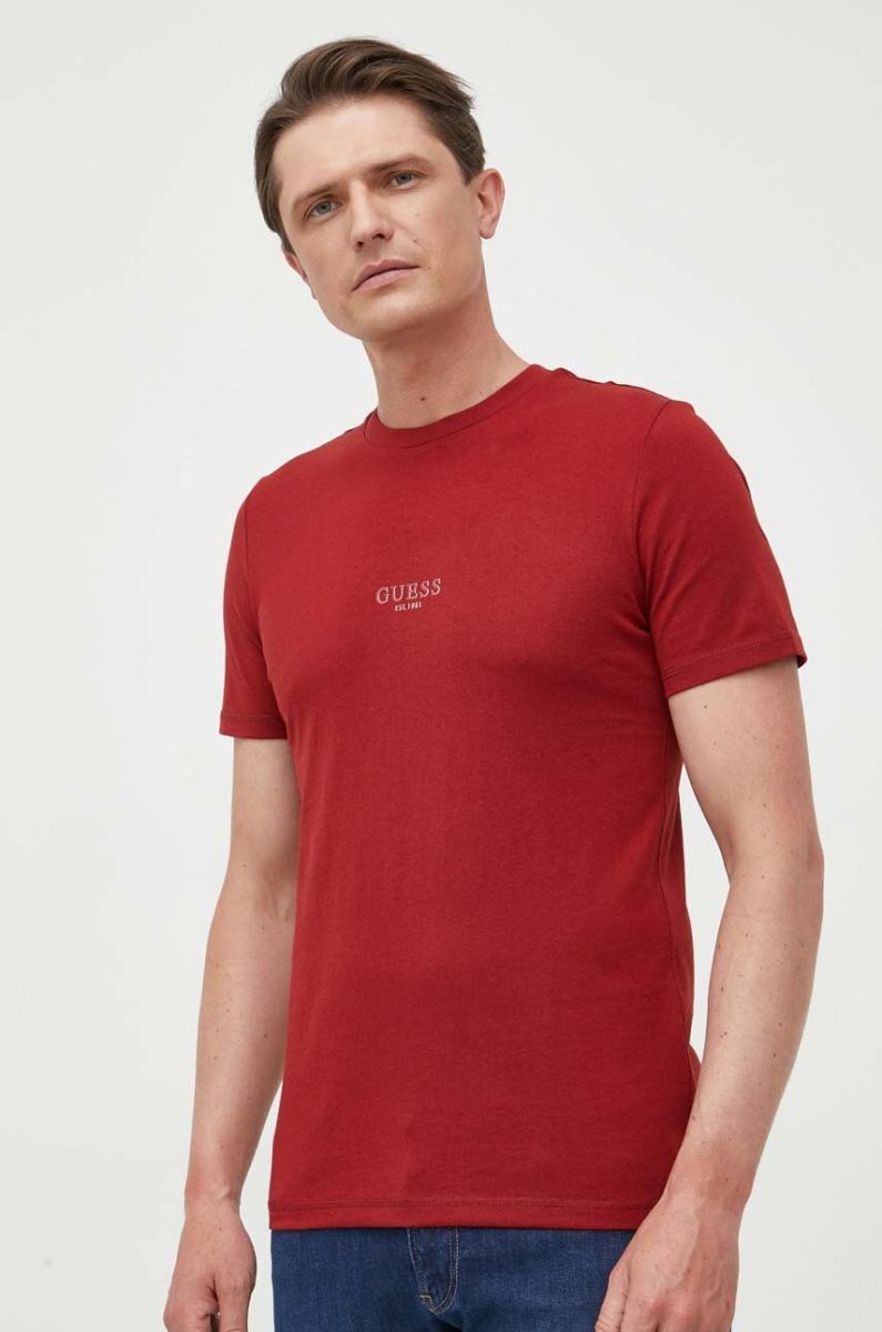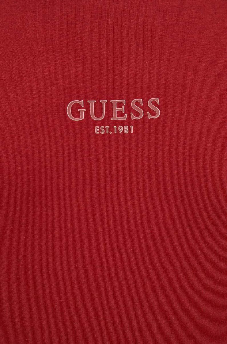 Бавовняна футболка Guess колір бордовий з аплікацією (3310643)