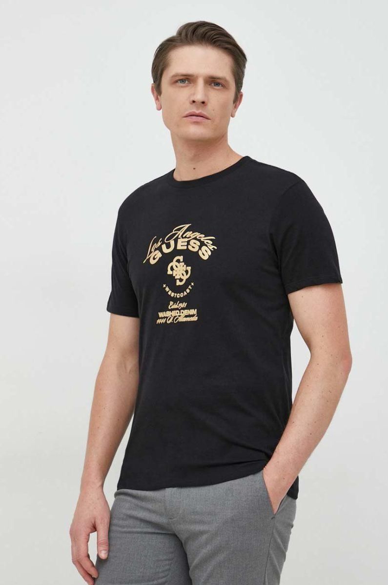 Бавовняна футболка Guess колір чорний з принтом (2894326)
