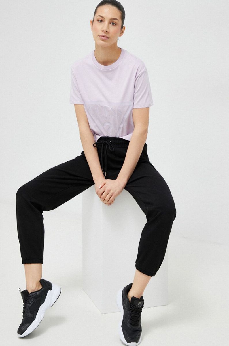 Бавовняна футболка Guess колір фіолетовий (2850436)