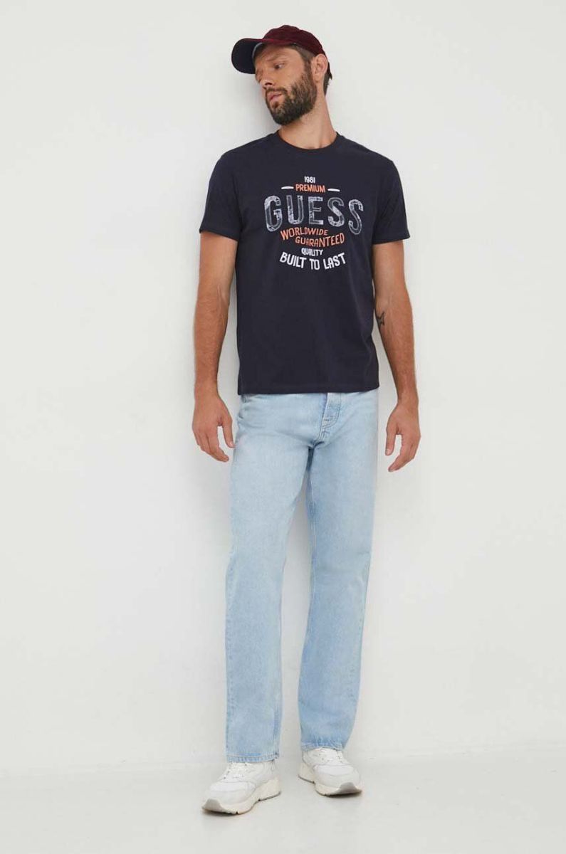 Бавовняна футболка Guess колір синій візерунок (3520703)