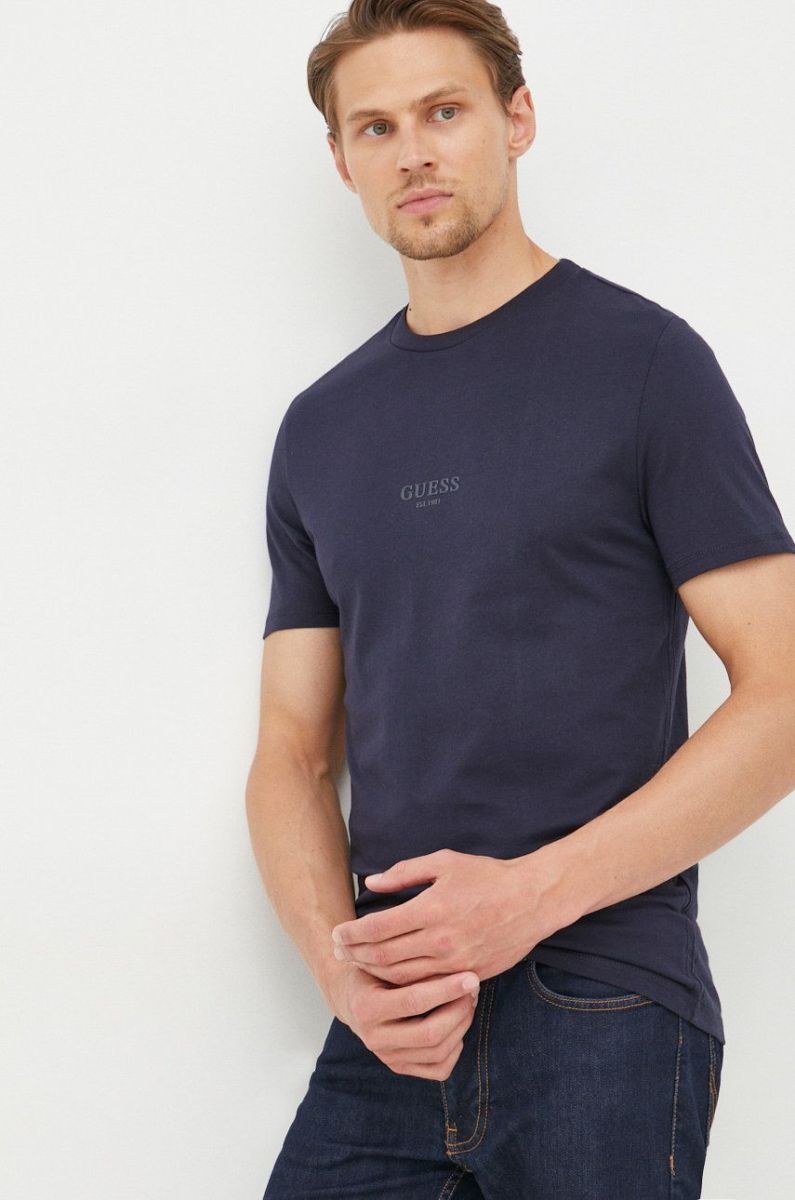 Бавовняна футболка Guess колір синій з аплікацією (2434644)