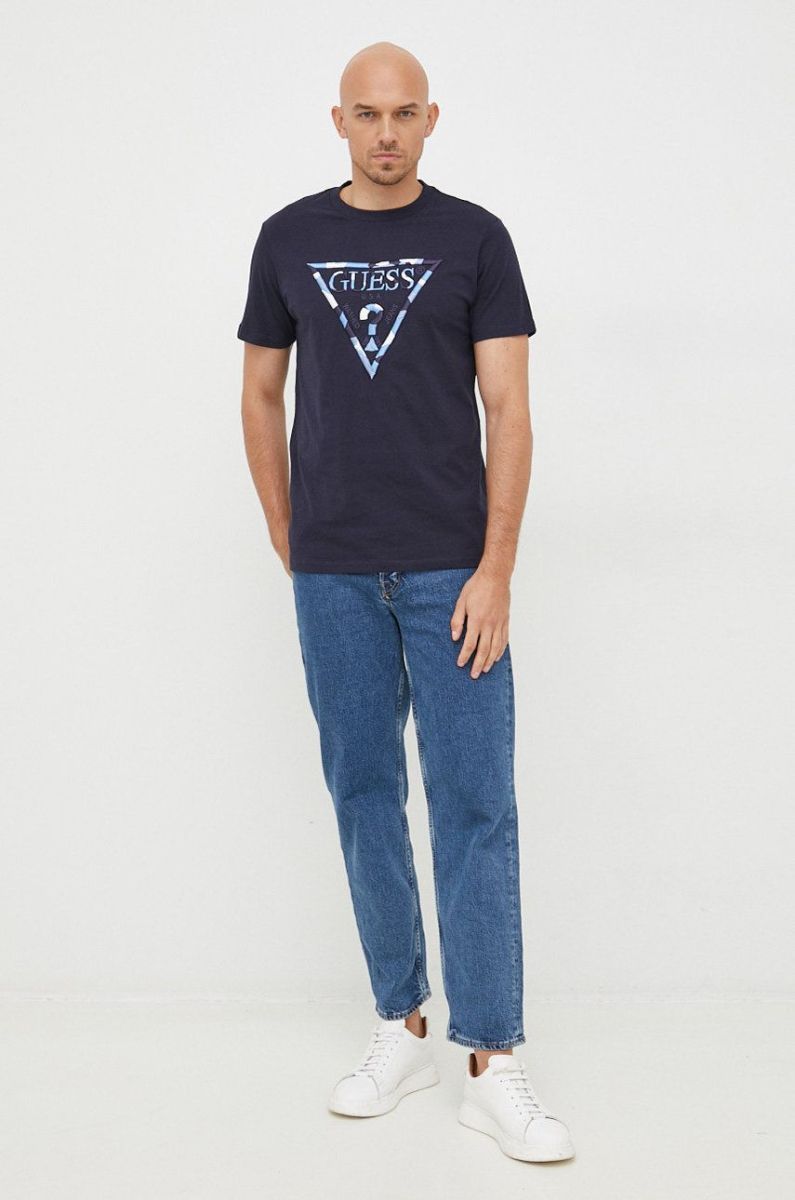Бавовняна футболка Guess колір синій з аплікацією (2688954)