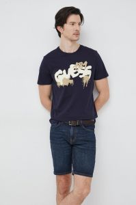 Бавовняна футболка Guess колір синій з принтом (3062979)