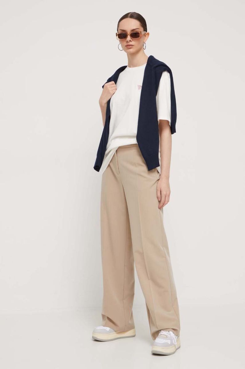 Бавовняна футболка Guess Originals колір бежевий однотонний
