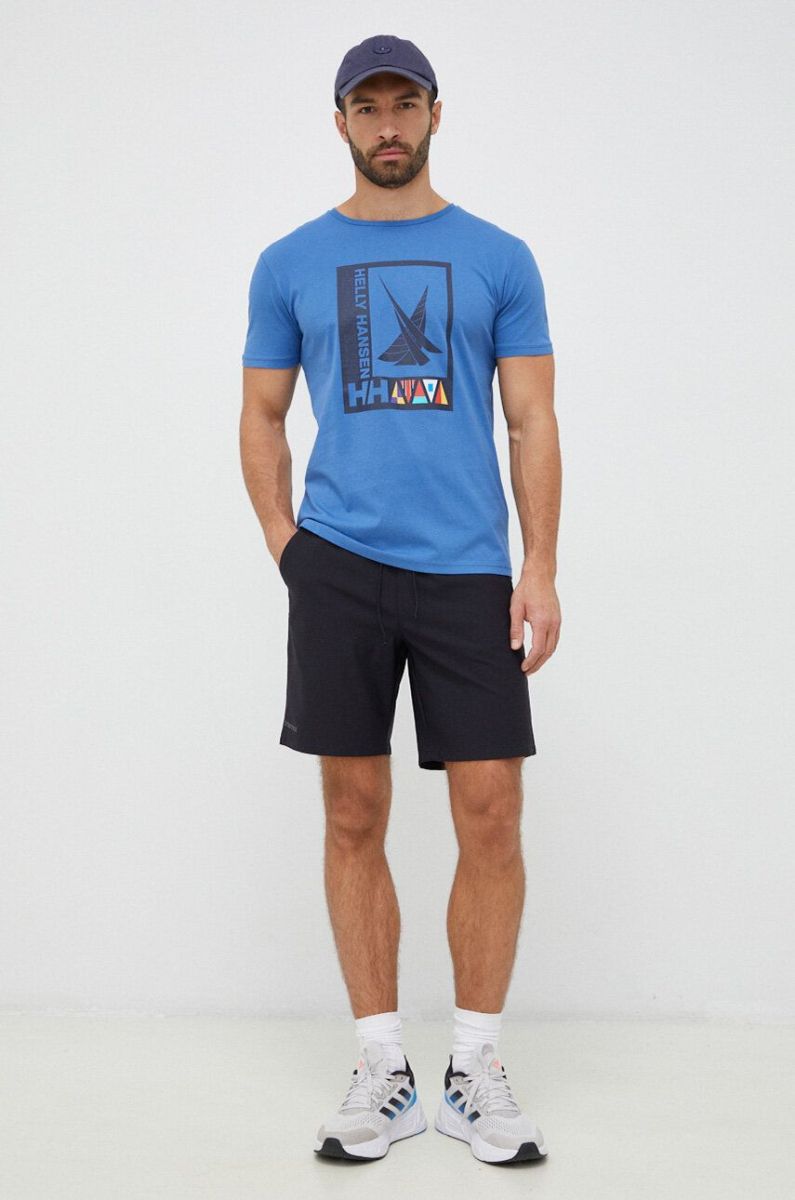 Бавовняна футболка Helly Hansen з принтом колір блакитний