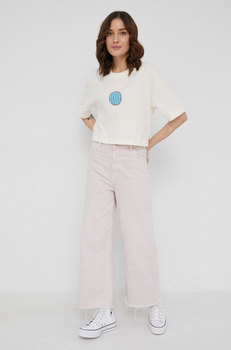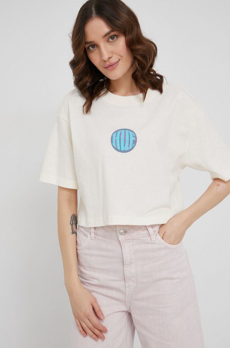 Бавовняна футболка HUF колір кремовий