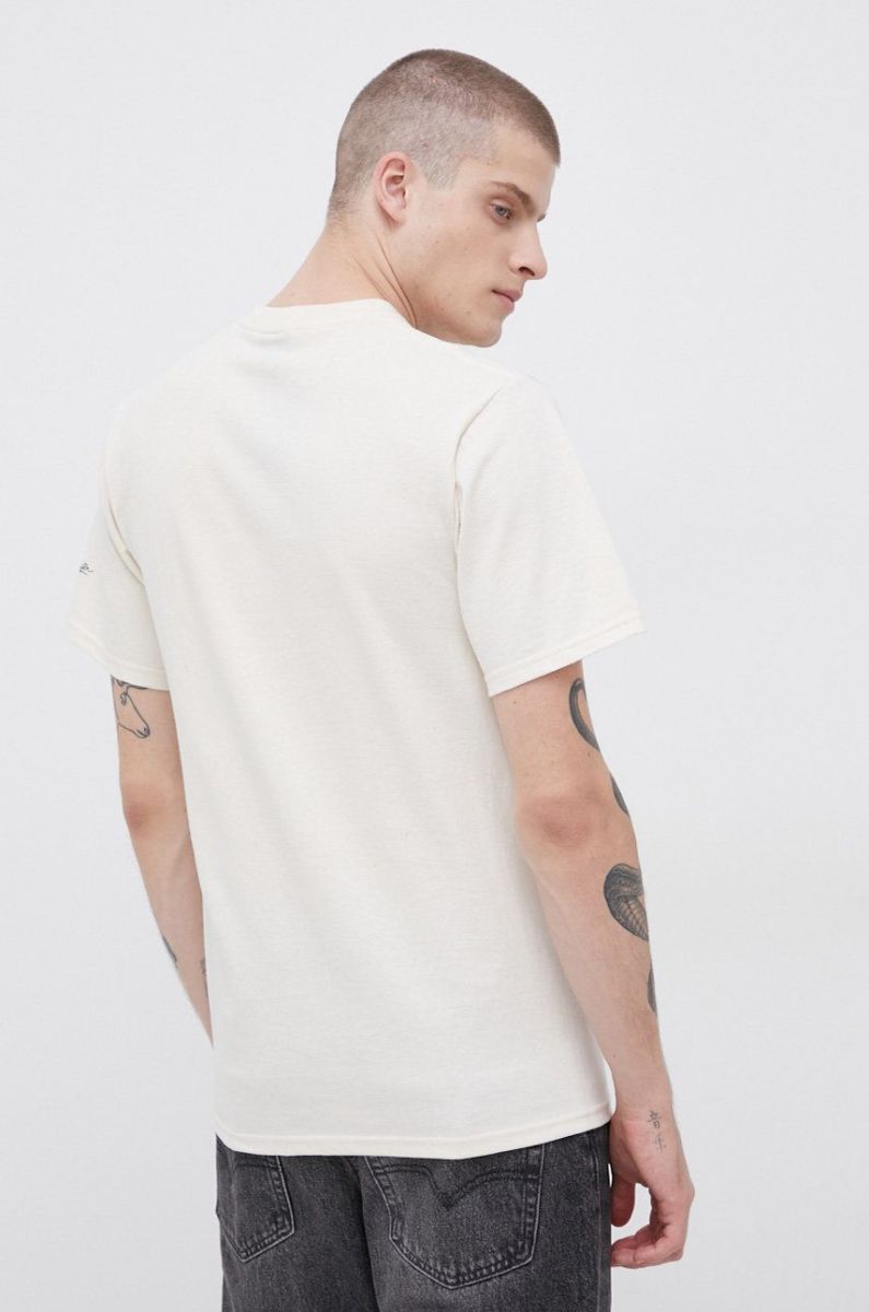 Бавовняна футболка HUF колір кремовий з принтом