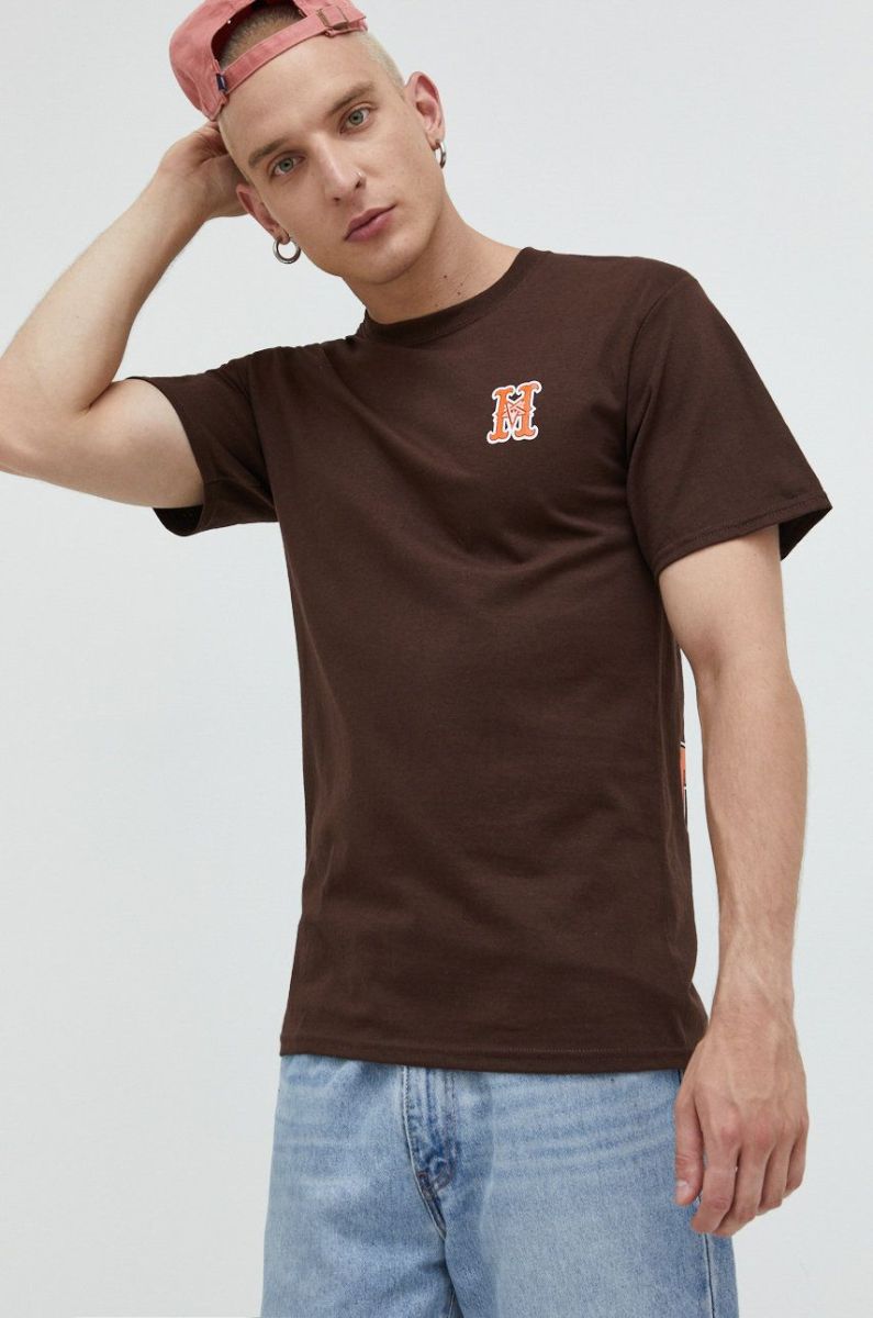 Бавовняна футболка HUF X Trasher колір коричневий з принтом