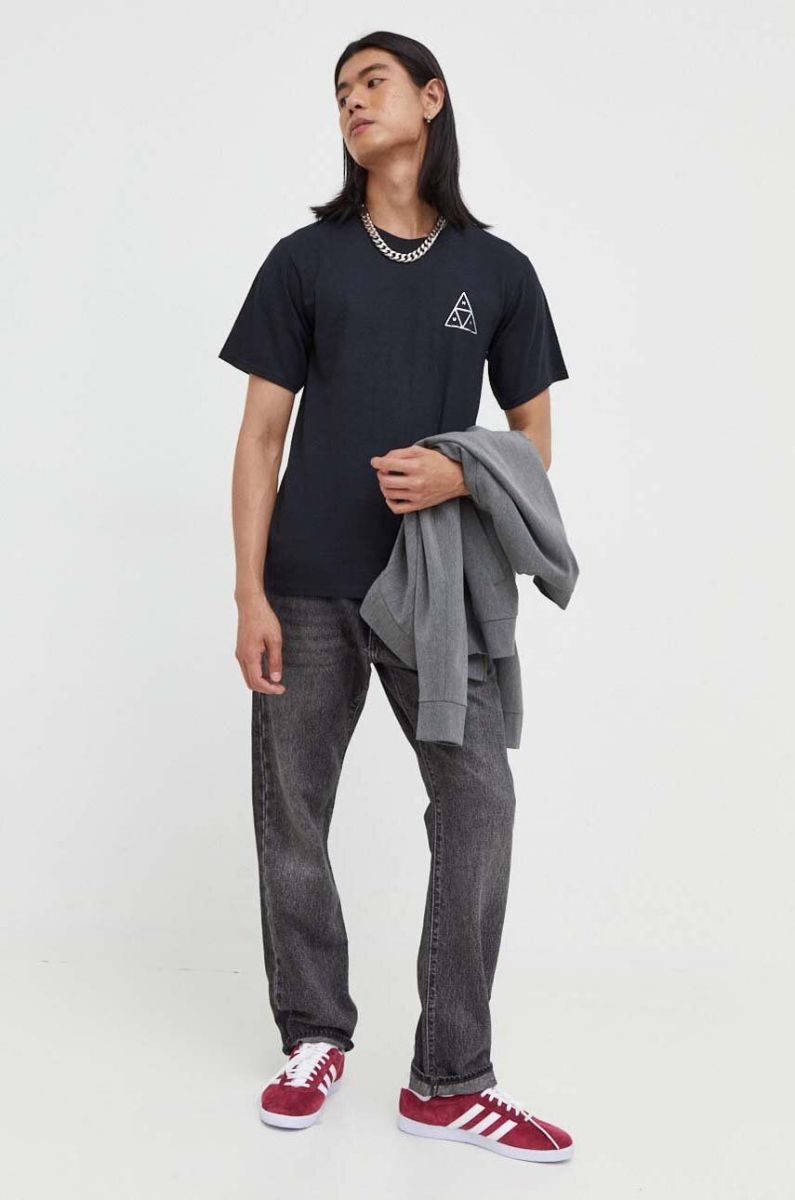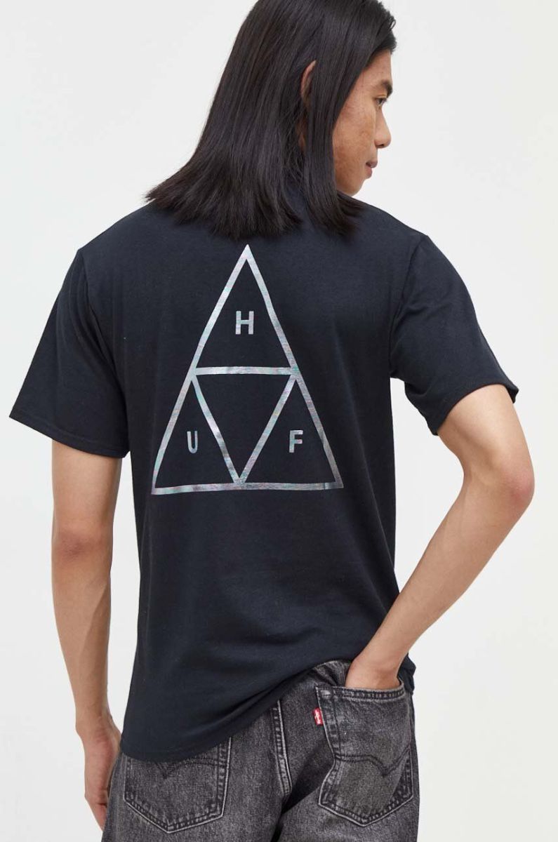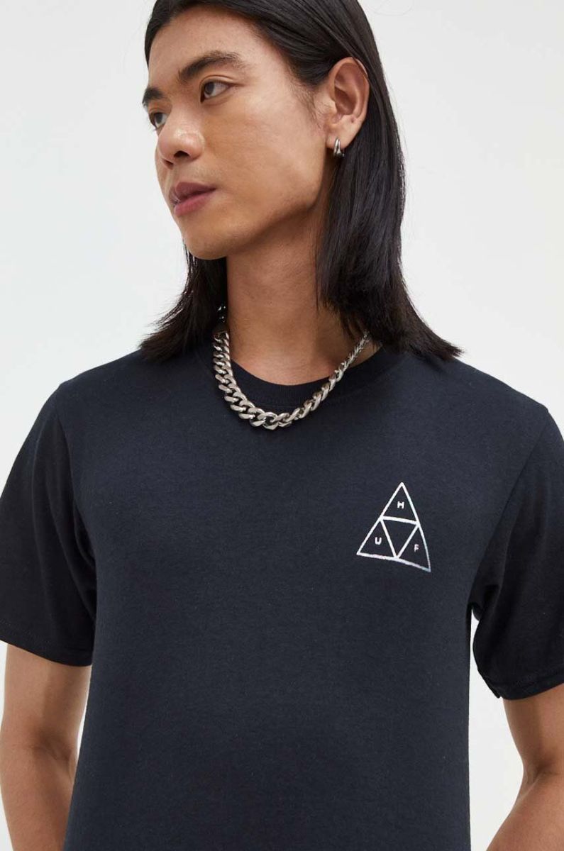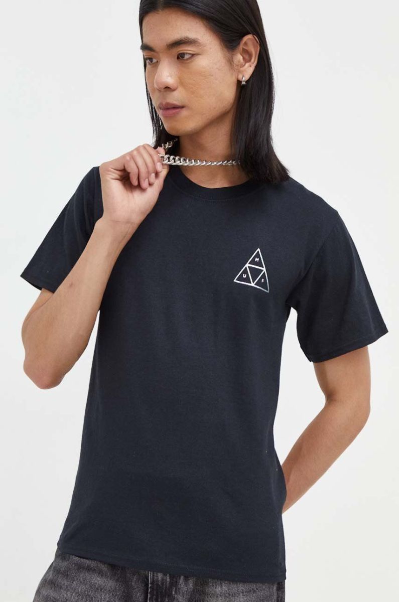 Бавовняна футболка HUF з принтом колір чорний