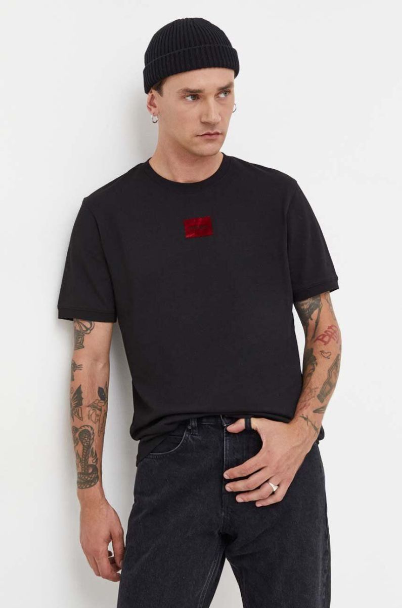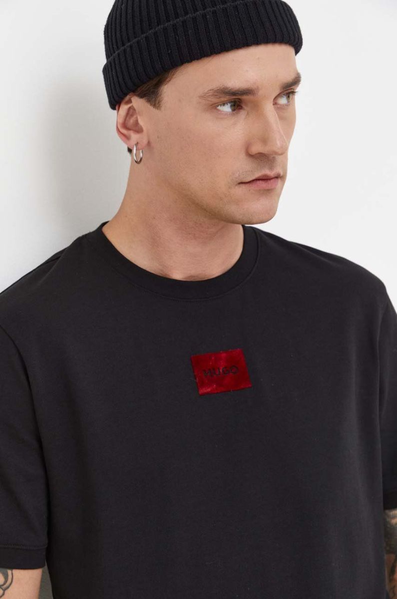 Бавовняна футболка HUGO чоловічий колір чорний з аплікацією (3633752)