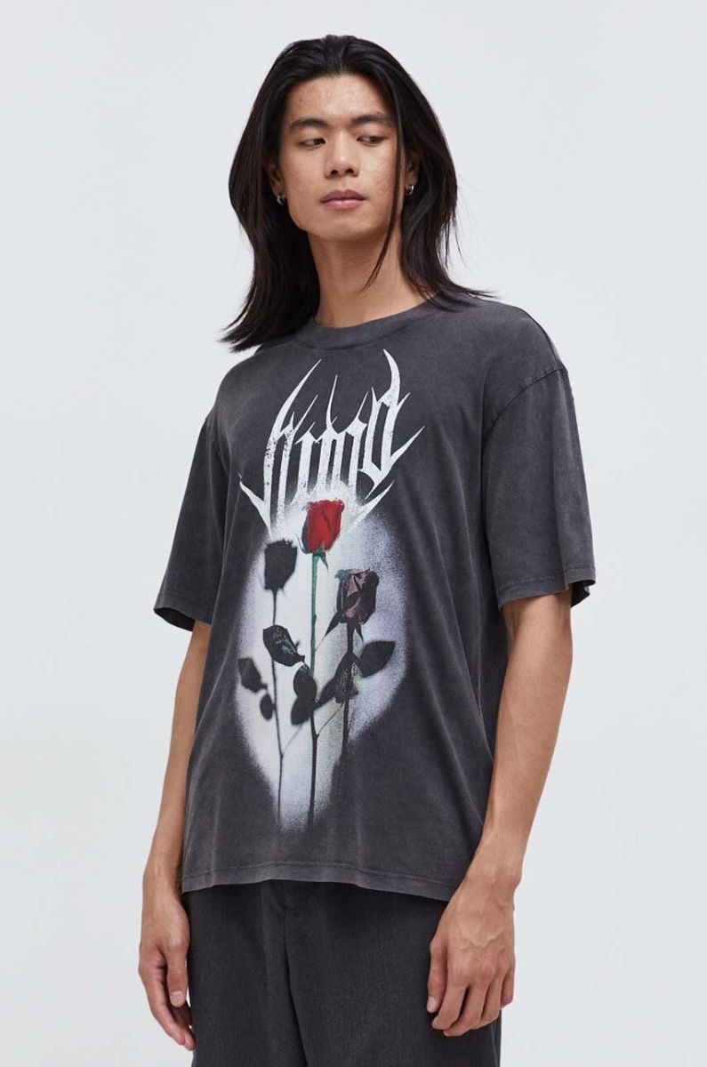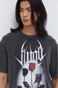 Бавовняна футболка HUGO чоловічий колір сірий з принтом (3611052)