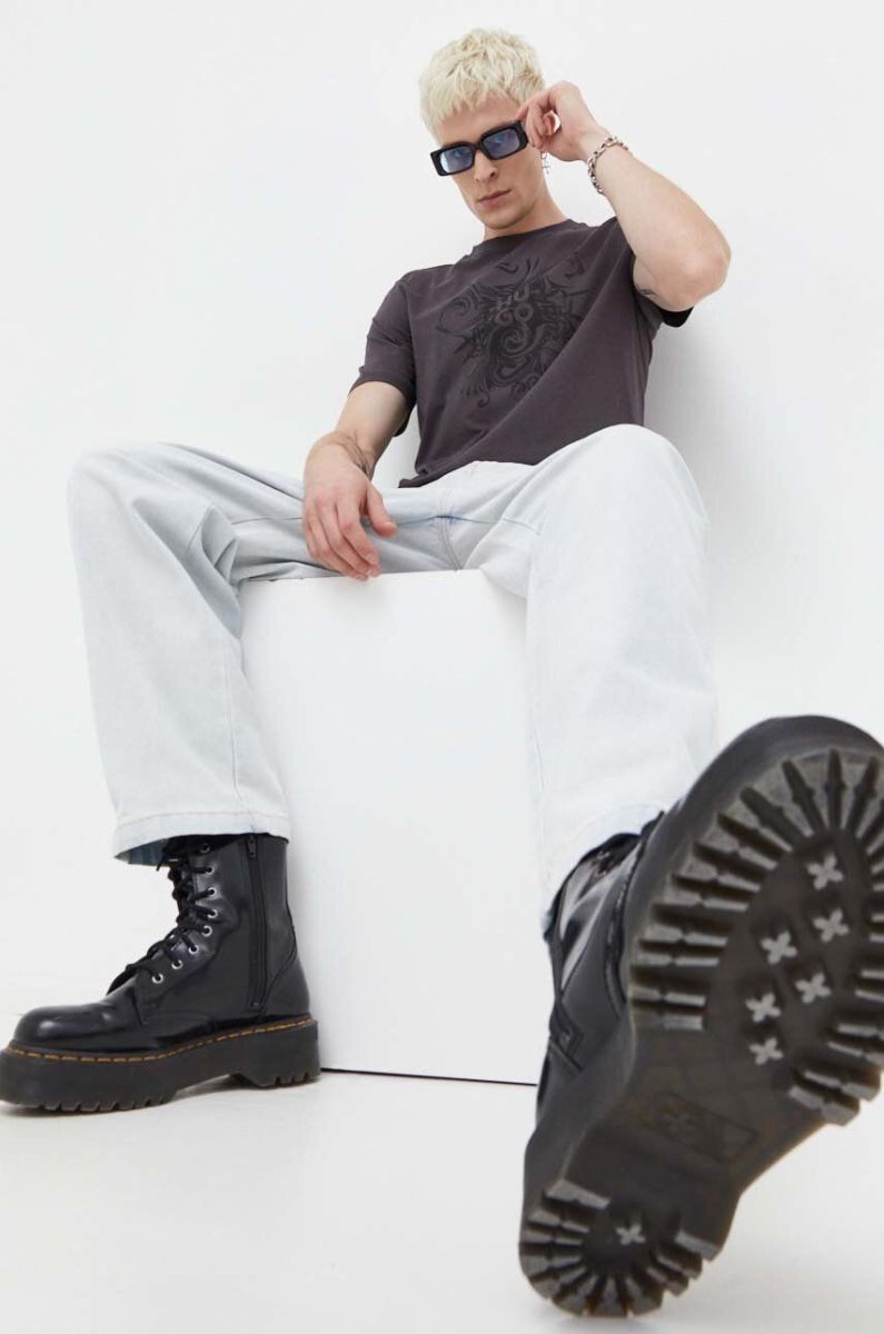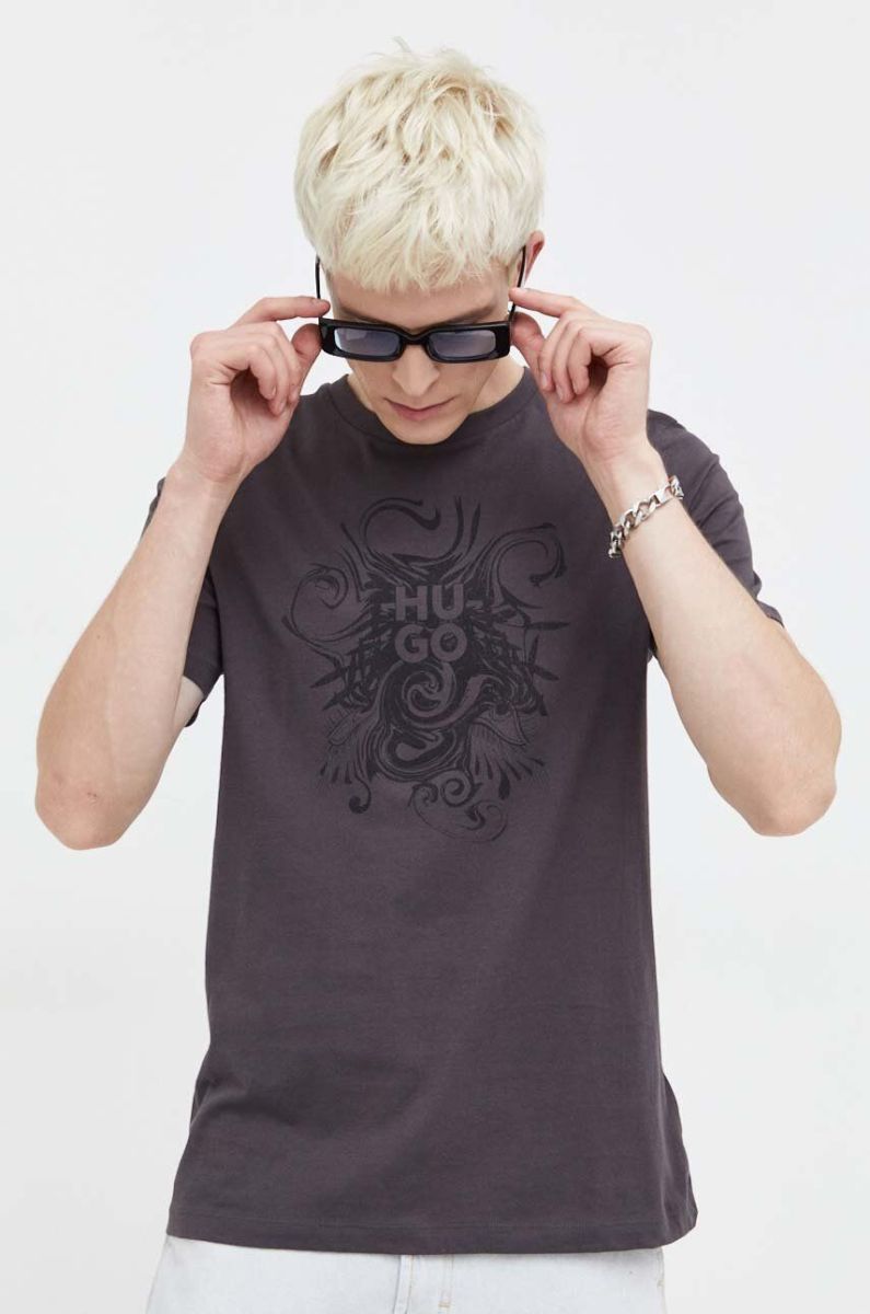 Бавовняна футболка HUGO чоловічий колір сірий з принтом (3645698)