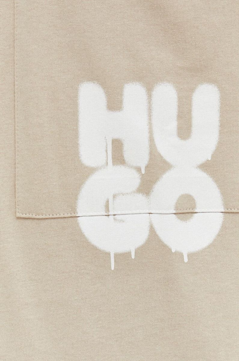 Бавовняна футболка HUGO колір бежевий з принтом (3124746)