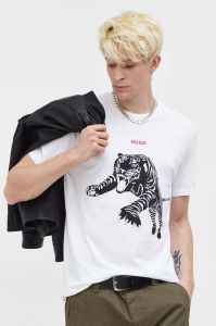 Бавовняна футболка HUGO колір білий з принтом (3508770)