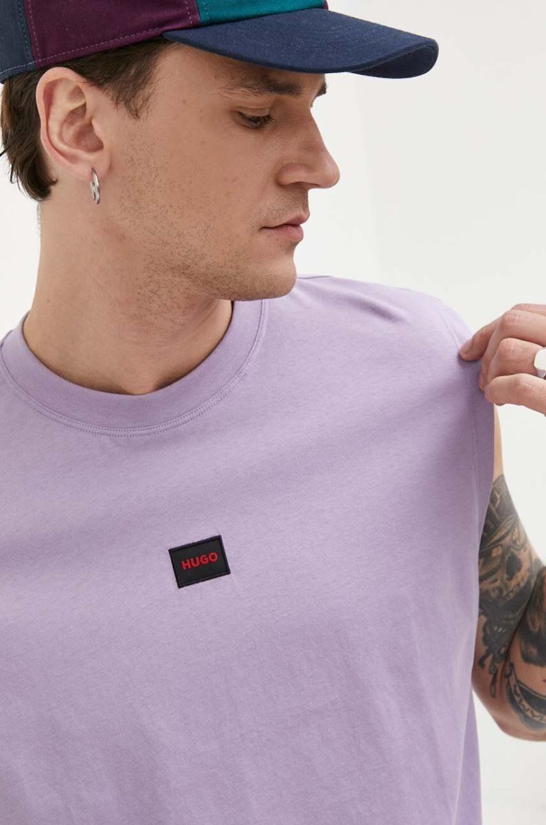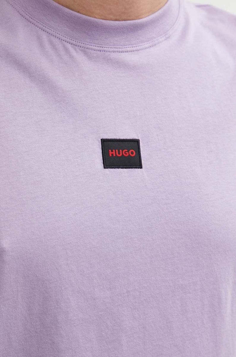 Бавовняна футболка HUGO колір фіолетовий з аплікацією