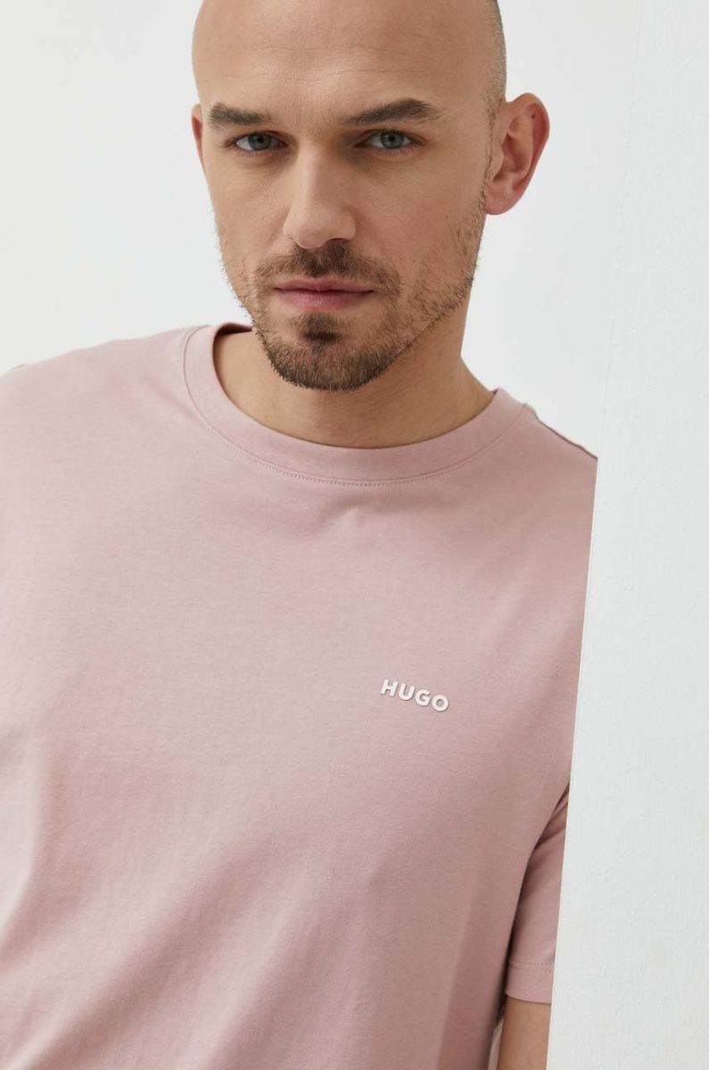 Бавовняна футболка HUGO колір рожевий однотонний