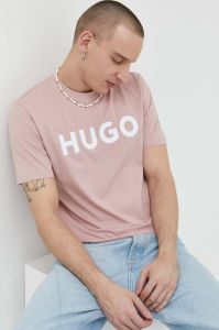 Бавовняна футболка HUGO колір рожевий з принтом (2960010)
