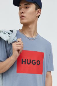 Бавовняна футболка HUGO з принтом колір блакитний (2340019)