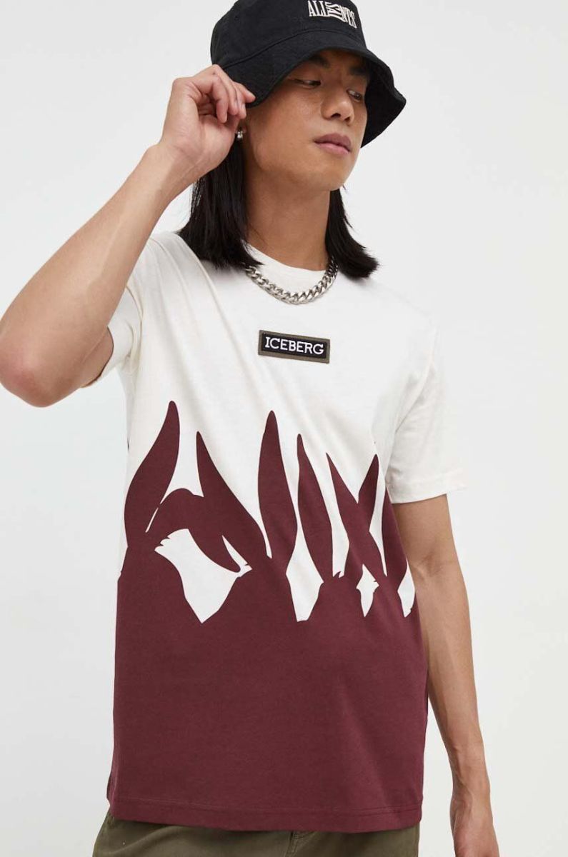 Бавовняна футболка Iceberg x Lonney Tunes колір бежевий візерунок