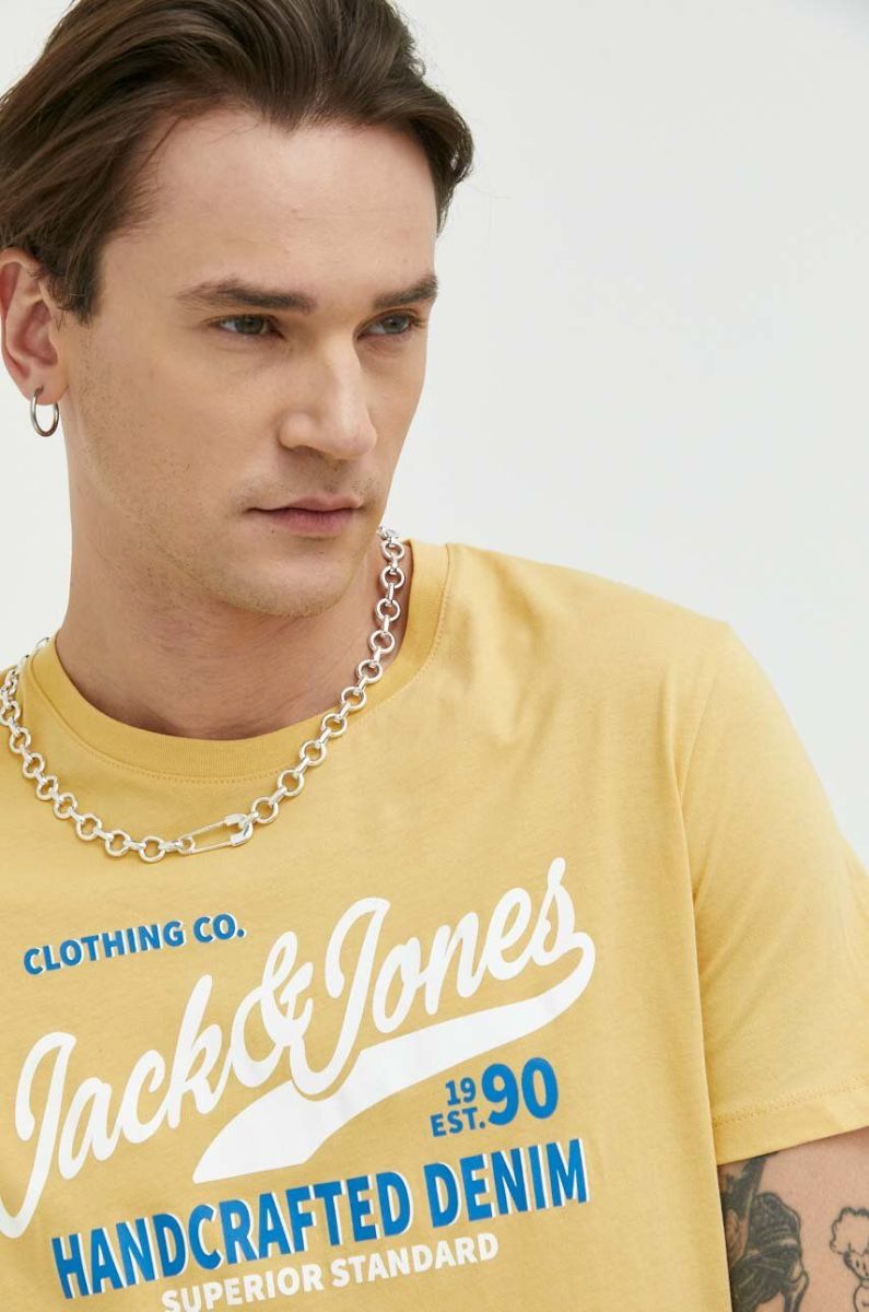 Бавовняна футболка Jack & Jones JJSTAR колір жовтий з принтом 12231477