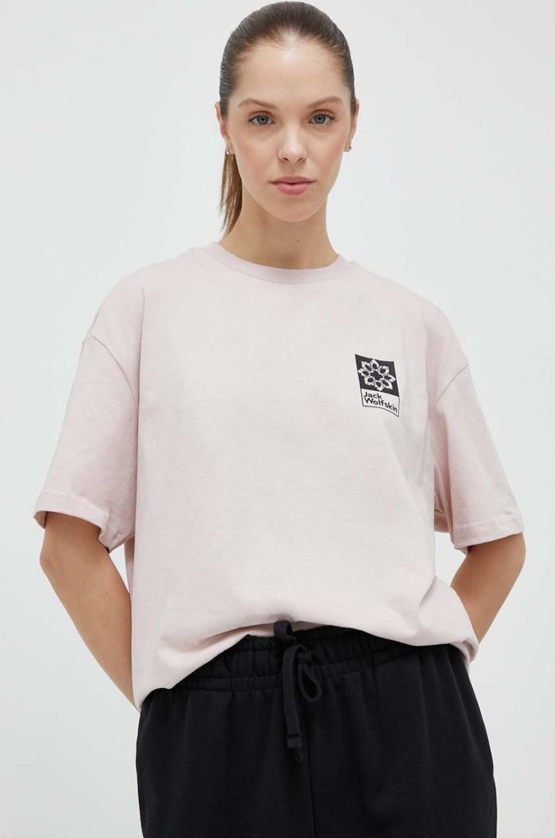 Бавовняна футболка Jack Wolfskin 10 колір рожевий з принтом