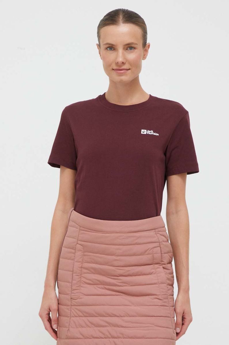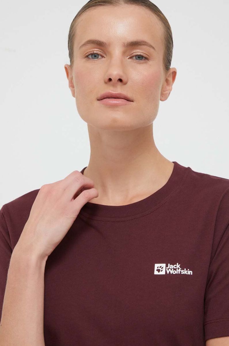 Бавовняна футболка Jack Wolfskin колір бордовий