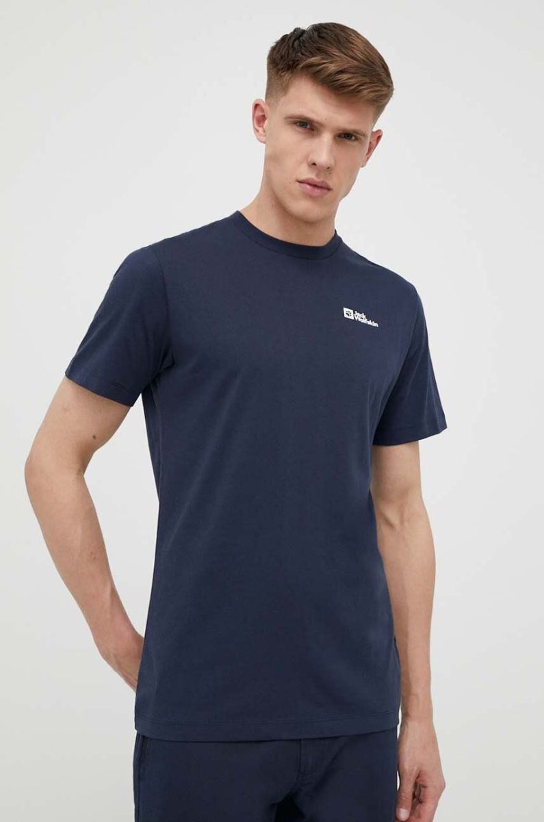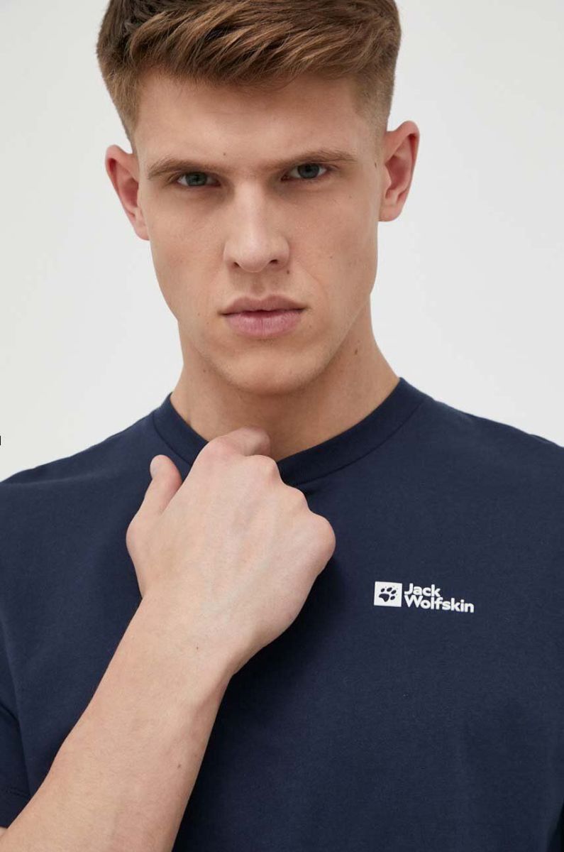 Бавовняна футболка Jack Wolfskin колір синій з принтом