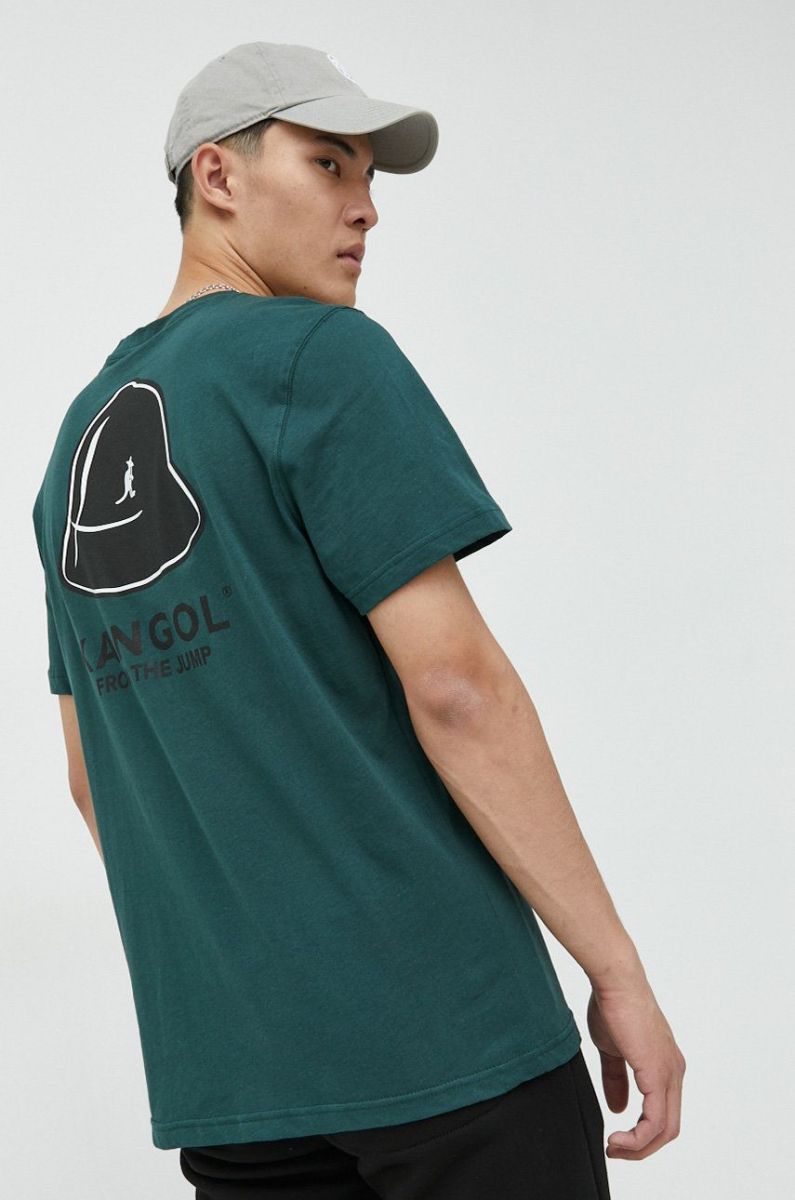 Бавовняна футболка Kangol колір зелений з принтом (2812574)