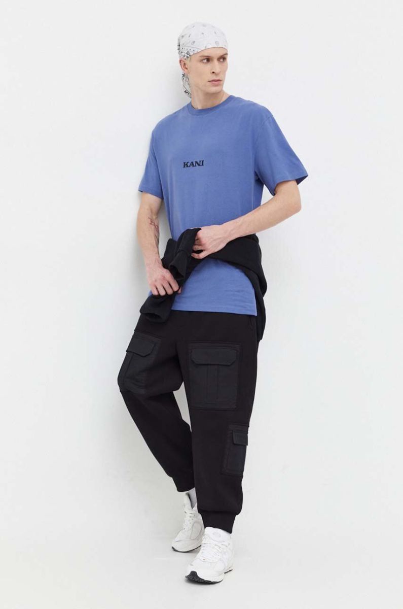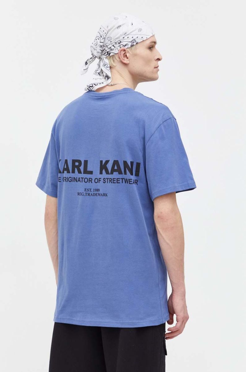 Бавовняна футболка Karl Kani чоловічий з принтом колір блакитний